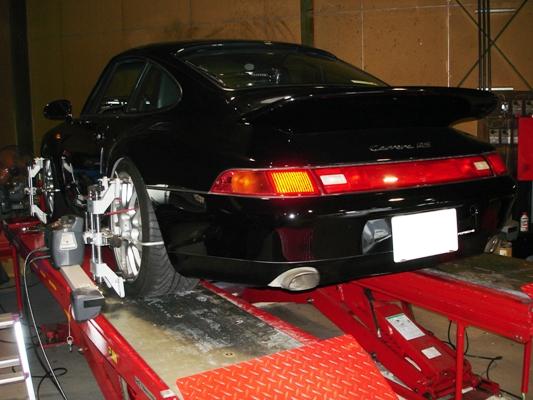 ポルシェ993の足廻り交換+アライメント測定+調整になります。5月末にダウンサスを装着したのですが、