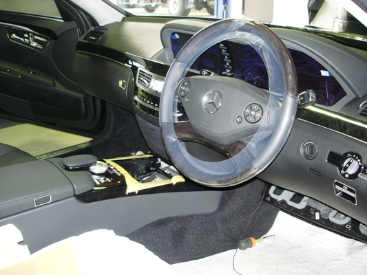 メルセデスベンツW221にドライブレコーダーの取り付けになります。新車なので何やるのにも