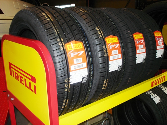 ピレリP7になります。輸入車にも減りが少なく、乗り心地重視のタイヤになります。ズバリおすすめです!