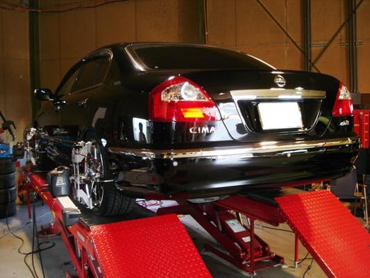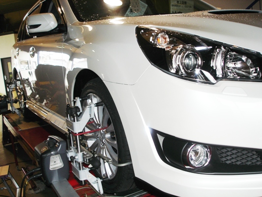 ニッサン(シーマ)のアライメント測定になります。ホイールをインチアップして車高を下げたので変磨耗