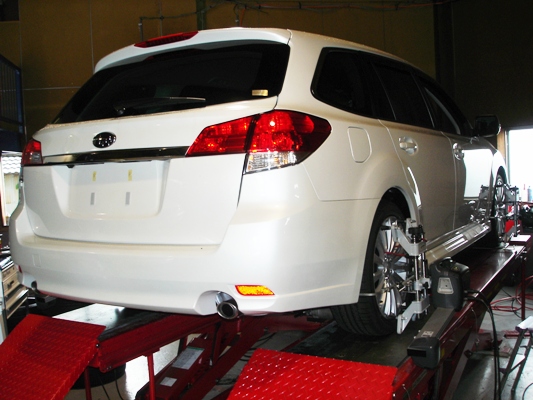 新型レガシィのアライメント測定+調整になります。新車でローダウンサスに交換した為、ディーラー様より