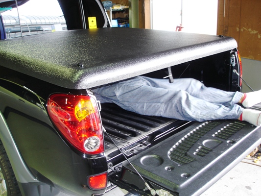 三菱トライトンにトノカバーを取り付けします。日本仕様にはトノカバーの設定がないので海外から取り寄せ