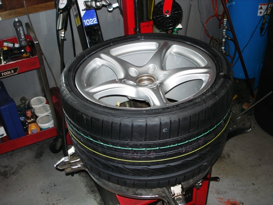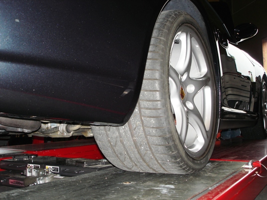 ポルシェ(997カレラ4S)のリアタイヤ交換になります。タイヤはN指定のブリヂストンRE050に