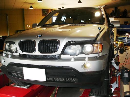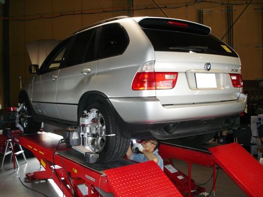 BMW(X5)のアライメント測定になります。以前タイヤ交換をされた時にリアのタイヤの内側が極端