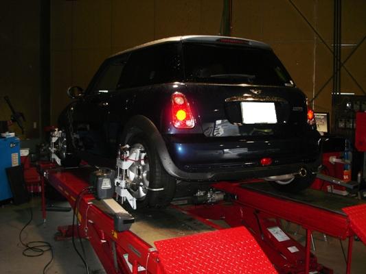 BMW(MINI)のアライメント測定+持ち込みタイヤ交換になります。ランフラットタイヤの乗り心地