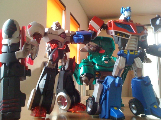 一番右のオプティマスプライムですが最近売れ切れみたいで子供が自慢してます。