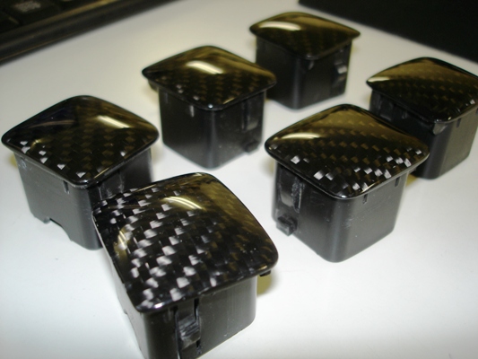 カーボンにしたいのですが..........形状の問題で断念です。でも以外に後ろから見るとワンポイントでいい