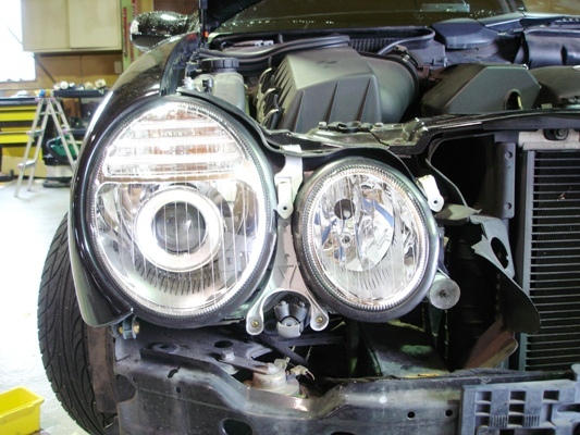 メルセデスベンツW210の純正ヘッドライト交換~W211ルックヘッドライト交換になります。年式と共に